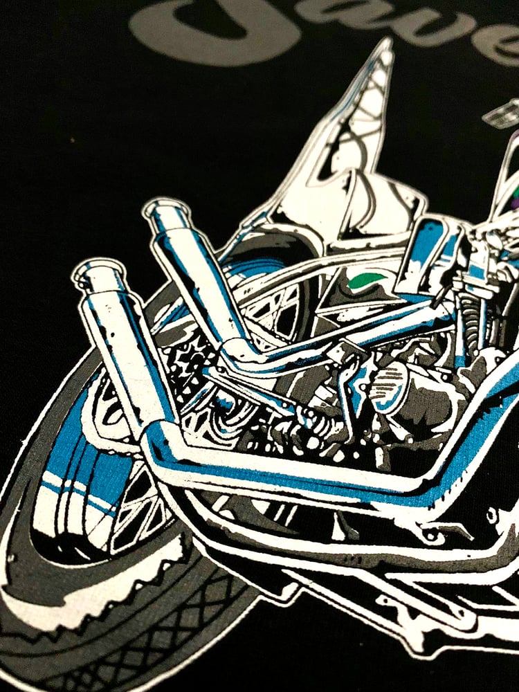This is cause I think that this t-shirt with the longest chopper I built on these past almost 16 years since I opened and thanks to the design of @mikztwo_ , it’s the perfect time to print it and as they never lift their head above the shoulders of the person walking in front of them, let's show them how beautiful choppers are !!